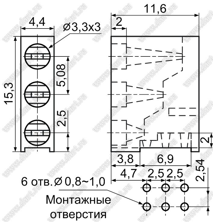 Каталог > Фурнитура для электронных устройств > Держатели и изоляторы компонентов > Держатели светодиодов > Держатели светодиодов угловые на плату > 3 x d=3,0мм > LH-330