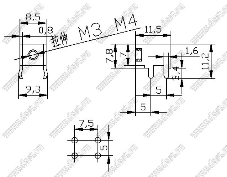Каталог > Фурнитура для электронных устройств > Терминалы для печатных плат > Терминалы винтовые для пайки в печатную плату > PCB-2 (M3) (PCB-002, MY-002)