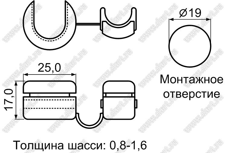 Втулка проходная под кабель; сечение кабеля=Ø14~17мм; нейлон-66 (UL); цвет черный