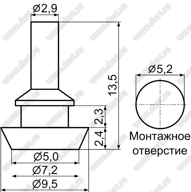 Ножка приборная под защелку в шасси; 9,5x2,4мм; резина; черный