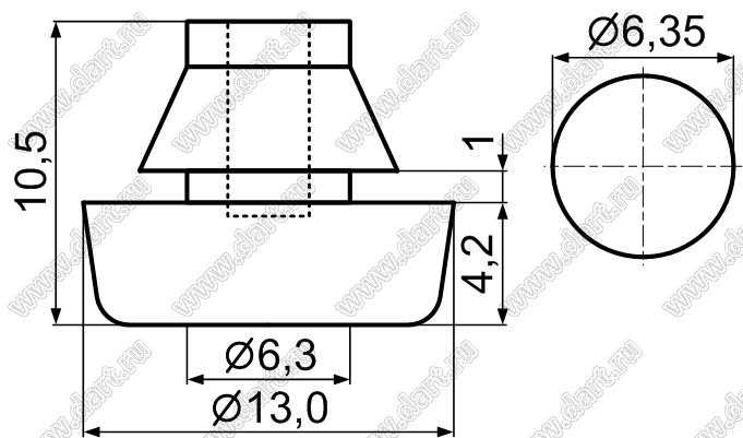 Ножка приборная под защелку в шасси; 13,0x4,2мм; резина; черный