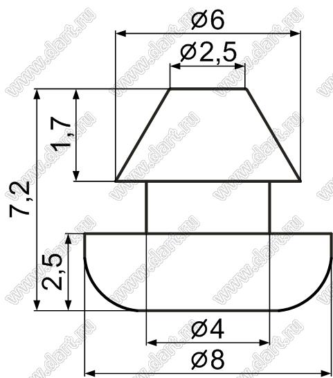 Ножка приборная под защелку в шасси; 8,0x2,5мм; резина; черный