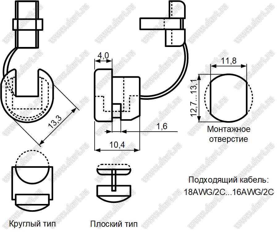 Размер кабеля сечение кабеля: 18AWG/2C / 16AWG/2C