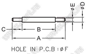 TEST-34 контакт контрольный; A=7,9мм; B=3,5мм; C=2,2мм; D=1,0мм; E=2,5мм; латунь золоченая   TEST-136