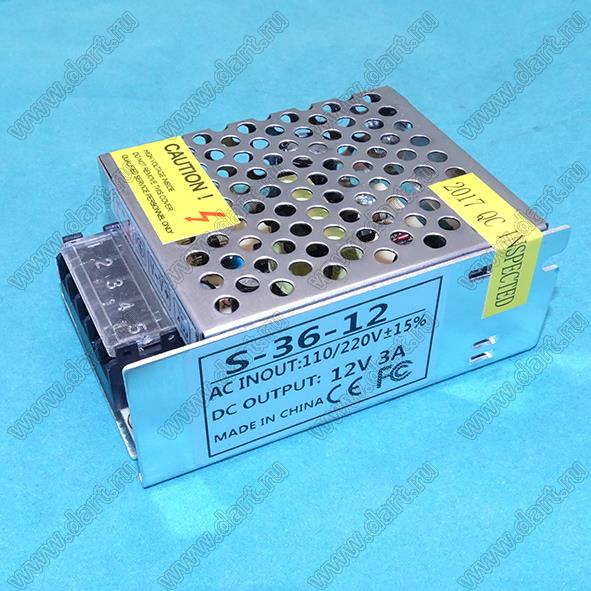 встраиваемый блок питания (open frame); Uвх=220В (±15%); Uвых=12В; Iвых=3А