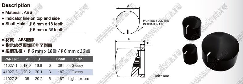 Каталог > Фурнитура для электронных устройств > Ручки приборные регулировочные > Ручки настройки > Ручки регулировочные металлические > 41xxx серия > 41027-1