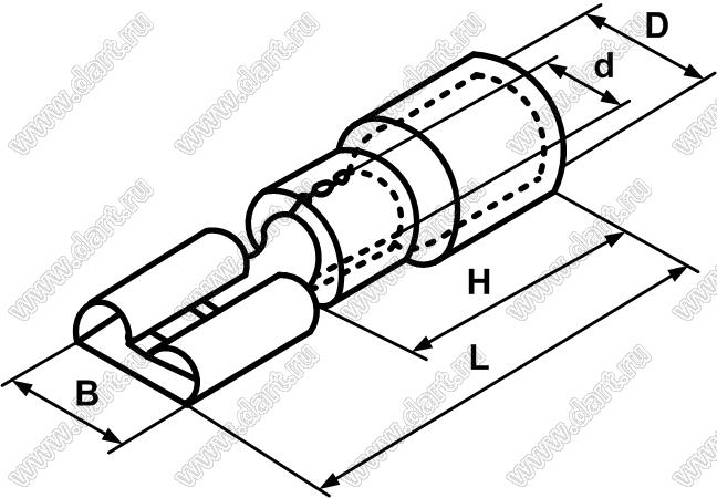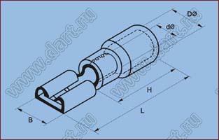 Каталог > Фурнитура для электронных устройств > Наконечники кабельные и клеммы FASTON россыпью в пакетах > Наконечники кабельные изолированные россыпью в пакетах > FDD серия: наконечники кабельные изолированные ножевые гнезда > FDD1.25-187(5) (RF187-5)