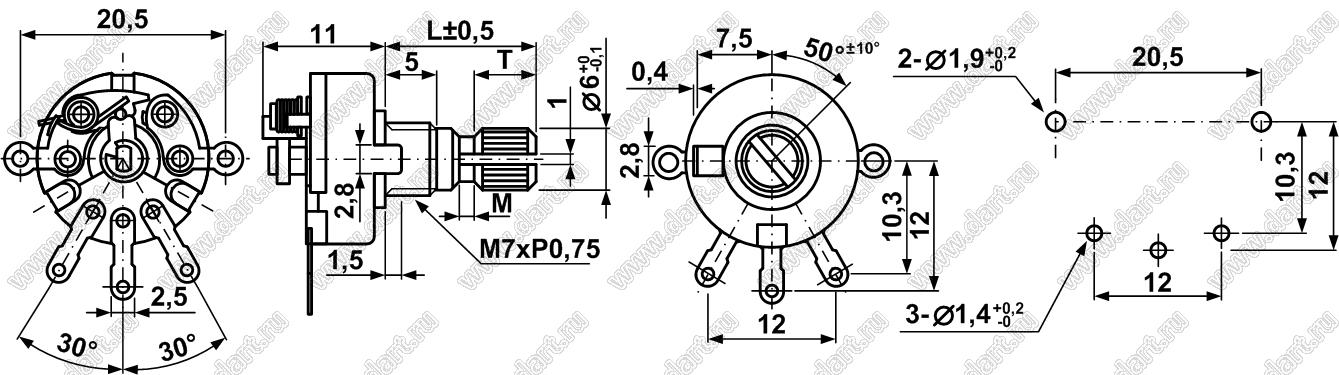 Каталог > Электронные компоненты, радиодетали > Резисторы > Резисторы переменные (потенциометры) > Роторные > 17 мм > RV17S-12KQ-A220K