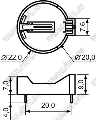 Каталог > Фурнитура для электронных устройств > Держатели аккумуляторов и батареек > Держатели для "таблеточных" элементов питания > Держатели элементов питания типоразмера 2032 > KF-3 (CH224-2032, BH20D66, BH-642, FH-4, BS-2-1PT, KLS5-CR2032-01)
