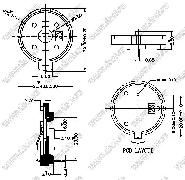 Каталог > Фурнитура для электронных устройств > Держатели аккумуляторов и батареек > Держатели для "таблеточных" элементов питания > Держатели элементов питания типоразмера 2325 > CH25-2325 (KLS5-CR2325-01)