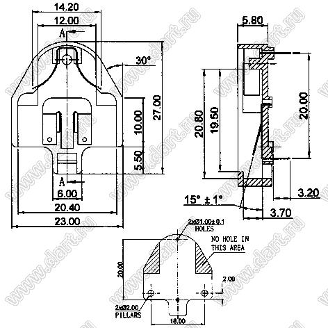 Каталог > Фурнитура для электронных устройств > Держатели аккумуляторов и батареек > Держатели для "таблеточных" элементов питания > Держатели элементов питания типоразмера 2032 > CH26-2032 (KST-2029)