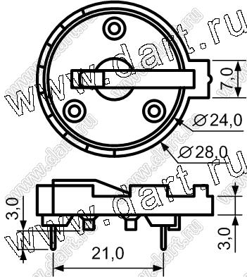 Каталог > Фурнитура для электронных устройств > Держатели аккумуляторов и батареек > Держатели для "таблеточных" элементов питания > Держатели элементов питания типоразмера 2425 > CH002-2425