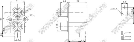 Каталог > Электронные компоненты, радиодетали > Разъёмы (соединители, переходники) > Разъемы аудио-видео > Разъемы RCA («тюльпан») > гнезда RCA > Блоки по два гнезда серии RCA "тюльпан" > RCA-207-FB
