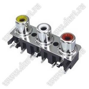 Каталог > Электронные компоненты, радиодетали > Разъёмы (соединители, переходники) > Разъемы аудио-видео > Разъемы RCA («тюльпан») > гнезда RCA > Блоки по три гнезда серии RCA "тюльпан" > RCA-325D-P