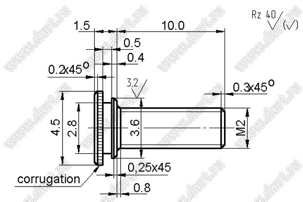 Каталог > Фурнитура для электронных устройств > Крепеж металлический (метизы) и пластиковый > Шпильки запрессовываемые ОСТ 4Г 0.892.006-81 > BLPS серия > BLPS-020100