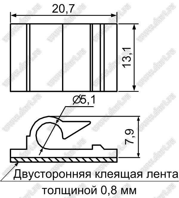 Каталог > Фурнитура для электронных устройств > Крепеж проводов и кабелей > Зажимы проводов на самоклеящихся площадках > WCL серия > WCL-1(3M)