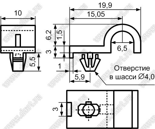 Каталог > Фурнитура для электронных устройств > Крепеж проводов и кабелей > Зажимы проводов с фиксацией в панель на защелках > Прочее > CLH-6