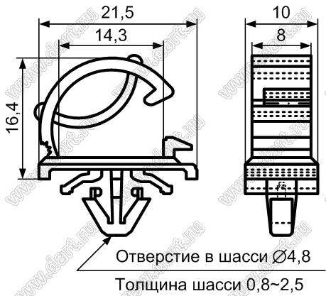 Каталог > Фурнитура для электронных устройств > Крепеж проводов и кабелей > Зажимы проводов с фиксацией в панель на защелках > WLO серия > WLO-3