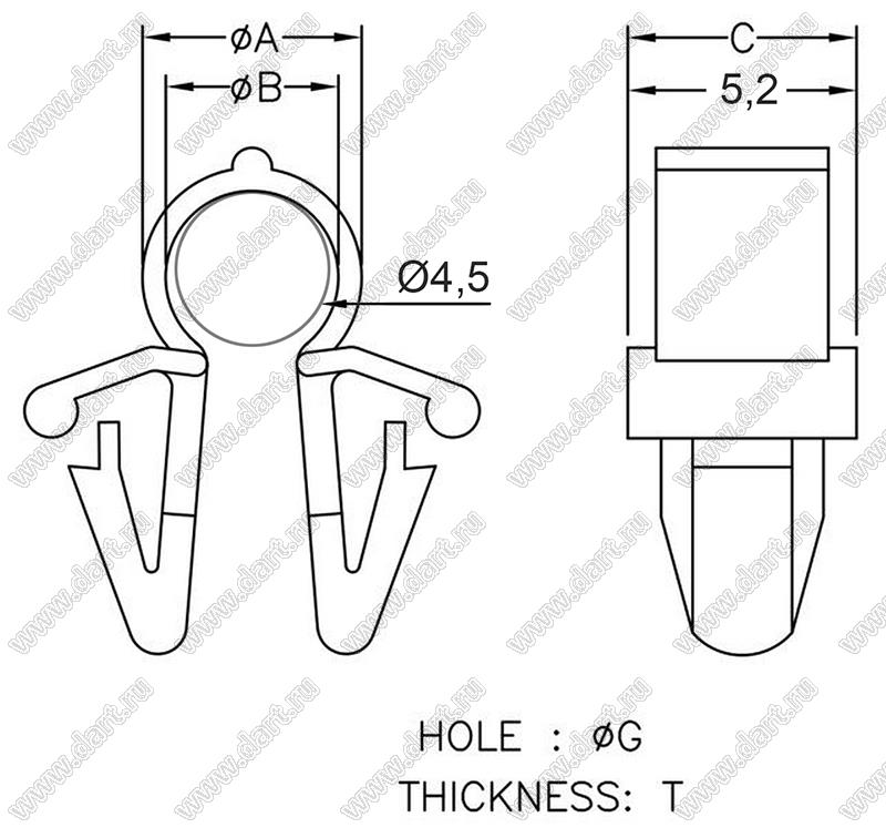 Каталог > Фурнитура для электронных устройств > Крепеж проводов и кабелей > Зажимы проводов с фиксацией в панель на защелках > OCC серия > OCC-5
