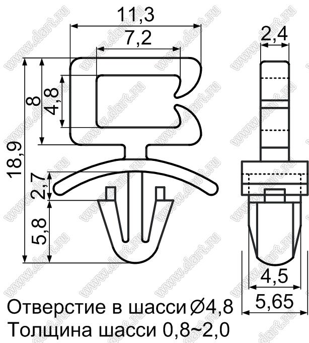 Каталог > Фурнитура для электронных устройств > Крепеж проводов и кабелей > Зажимы проводов с фиксацией в панель на защелках > Прочее > WAS-1