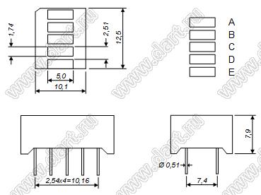 Каталог > Оптоэлектроника и индикация > Индикаторы светодиодные (сегментные дисплеи, матрицы, шкалы, светящиеся поля) > Шкалы cветодиодные > BR-B5A