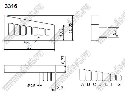 Каталог > Оптоэлектроника и индикация > Индикаторы светодиодные (сегментные дисплеи, матрицы, шкалы, светящиеся поля) > Шкалы cветодиодные > BR3316C