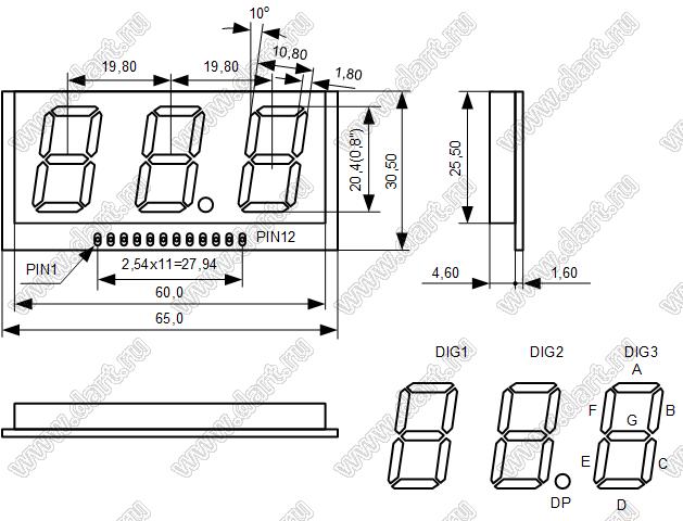 Каталог > Оптоэлектроника и индикация > Индикаторы светодиодные (сегментные дисплеи, матрицы, шкалы, светящиеся поля) > Часовые и приборные cветодиодные индикаторы > BF30801-L