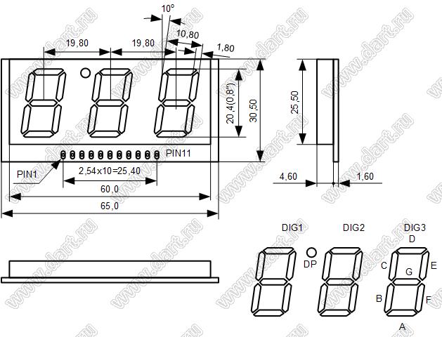 Каталог > Оптоэлектроника и индикация > Индикаторы светодиодные (сегментные дисплеи, матрицы, шкалы, светящиеся поля) > Часовые и приборные cветодиодные индикаторы > BF30802-I