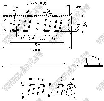 Каталог > Оптоэлектроника и индикация > Индикаторы светодиодные (сегментные дисплеи, матрицы, шкалы, светящиеся поля) > Часовые и приборные cветодиодные индикаторы > BF40601-D