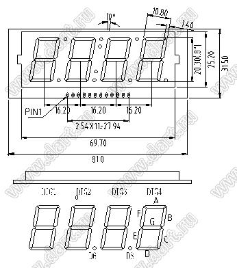 Каталог > Оптоэлектроника и индикация > Индикаторы светодиодные (сегментные дисплеи, матрицы, шкалы, светящиеся поля) > Часовые и приборные cветодиодные индикаторы > BF40801-L