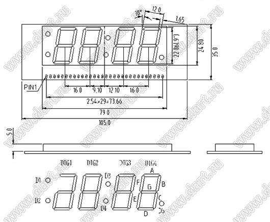 Каталог > Оптоэлектроника и индикация > Индикаторы светодиодные (сегментные дисплеи, матрицы, шкалы, светящиеся поля) > Часовые и приборные cветодиодные индикаторы > BF40901-G
