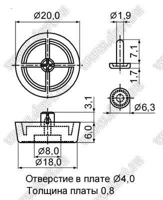 Каталог > Фурнитура для электронных устройств > Ножки приборные > Круглые > FF серия: ножки приборные с распорной вставкой > FF-19