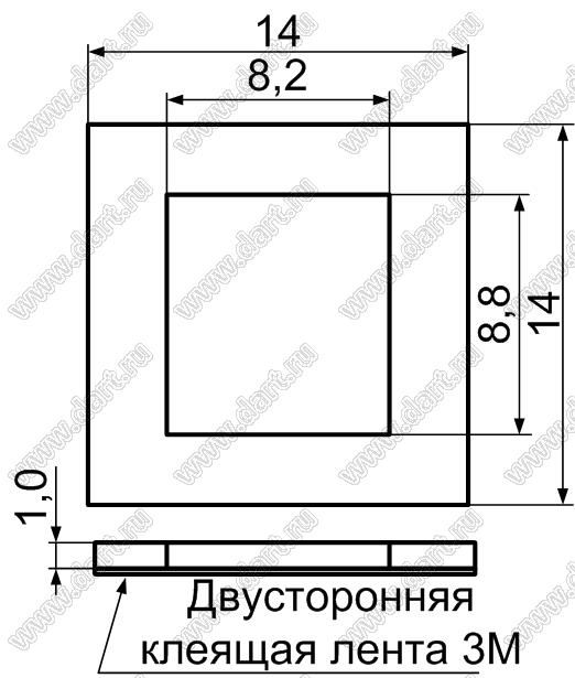 Ножка приборная, квадратная с отверстием, самоклеящаяся; 14,0x14,0мм; H=1,0мм; резина; черный