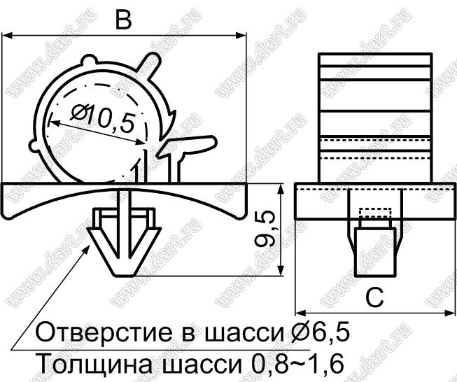 Каталог > Фурнитура для электронных устройств > Крепеж проводов и кабелей > Зажимы проводов с фиксацией в панель на защелках > WL серия > WL-1