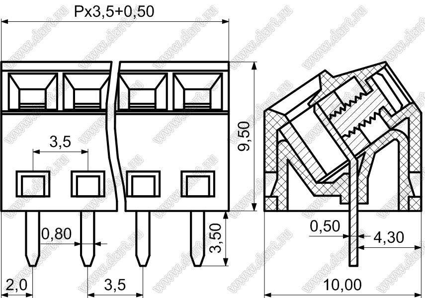 Каталог > Электронные компоненты, радиодетали > Клеммники (колодки клеммные) > Клеммники винтовые для монтажа в отверстия печатных плат > Винтовые клеммники (шаг 3,50 мм) > KF127S-3.5 серия > KF127S-3.5-02P-14