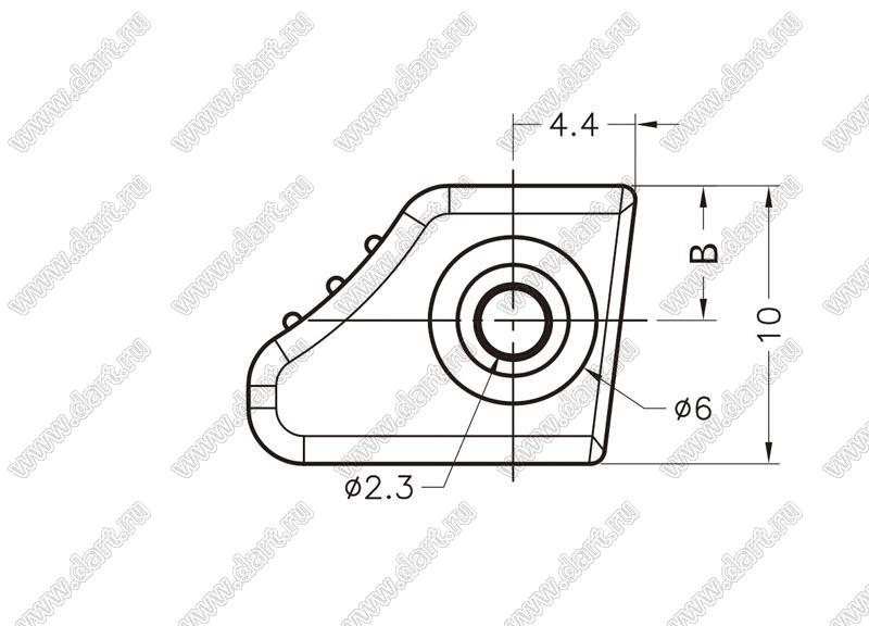 HANE-46 ручка; A=7,8мм; B=4,84мм; C=Ø3,2мм; D=6,6мм; E=2,6мм; F=3,4мм; T=0,6мм; пластик   HANE-46