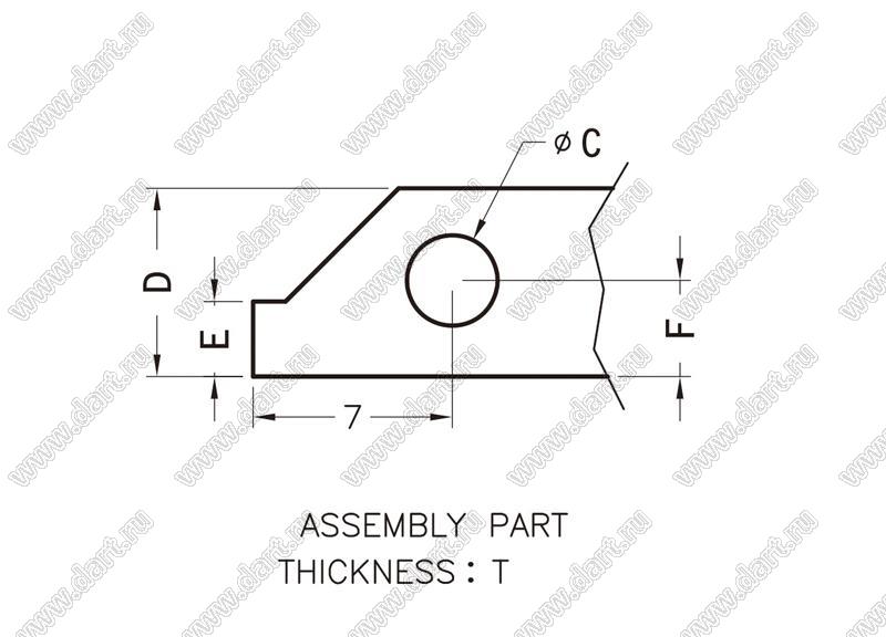 ручка; A=7,8мм; B=4,84мм; C=Ø3,2мм; D=6,6мм; E=2,6мм; F=3,4мм; T=0,6мм; пластик