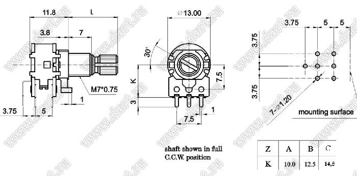 Каталог > Электронные компоненты, радиодетали > Резисторы > Резисторы переменные (потенциометры) > Роторные > 12 мм > R1210G-2A2-B102