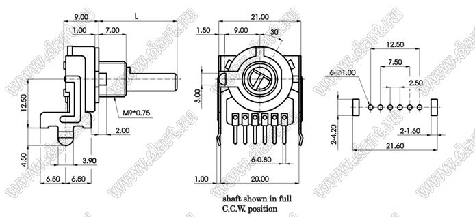 Каталог > Электронные компоненты, радиодетали > Резисторы > Резисторы переменные (потенциометры) > Роторные > 16 мм > R1612G-NA1-B503-CEIP