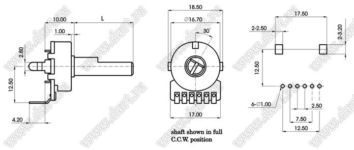 Каталог > Электронные компоненты, радиодетали > Резисторы > Резисторы переменные (потенциометры) > Роторные > 16 мм > R1616G-BD1-B503