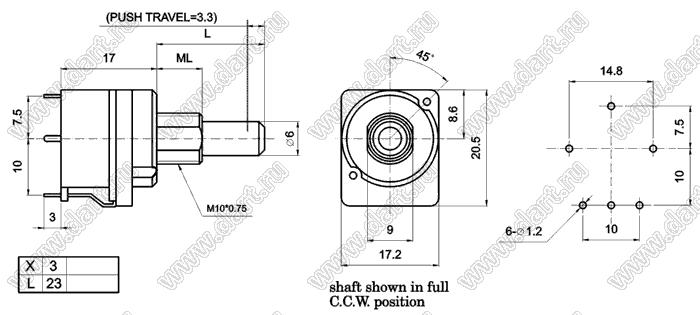 Каталог > Электронные компоненты, радиодетали > Резисторы > Резисторы переменные (потенциометры) > Роторные > 16 мм > R16P33-3D1-B103