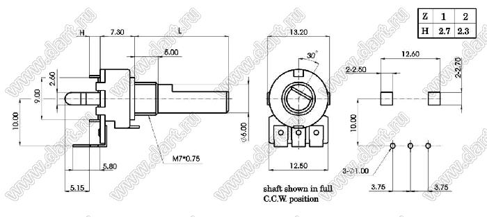 Каталог > Электронные компоненты, радиодетали > Резисторы > Резисторы переменные (потенциометры) > Роторные > 12 мм > R1212N-3D1-B503