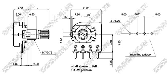 Каталог > Электронные компоненты, радиодетали > Резисторы > Резисторы переменные (потенциометры) > Роторные > 16 мм > R1610P-2A1-B103