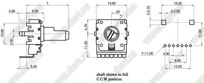 Каталог > Электронные компоненты, радиодетали > Резисторы > Резисторы переменные (потенциометры) > Роторные > 14 мм > R1416G-DD1-C104