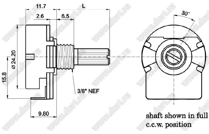 Каталог > Электронные компоненты, радиодетали > Резисторы > Резисторы переменные (потенциометры) > Роторные > 24 мм > R2415N-NB1-B103