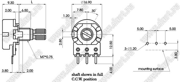 Каталог > Электронные компоненты, радиодетали > Резисторы > Резисторы переменные (потенциометры) > Роторные > 16 мм > R1610N-4A1-B103