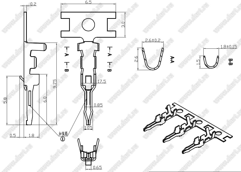 Каталог > Электронные компоненты, радиодетали > Разъёмы (соединители, переходники) > Разъемы кабель-плата > Шаг 2,50мм > B2501-2 серия > B2501-TB (SCN-001T-1.0K)