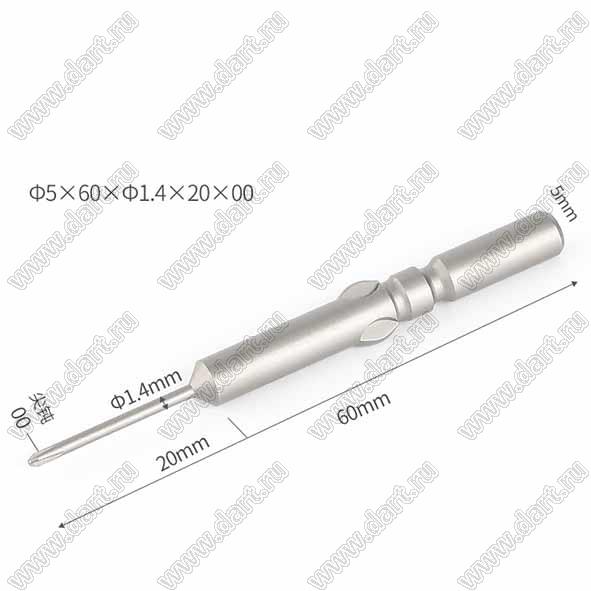 Каталог > Приборы, инструмент, оборудование, материалы > Инструменты > Отвертки, ключи и принадлежности > Биты для шуруповертов и электрических отверток > Ф5x60xФ1.4x20xРН00