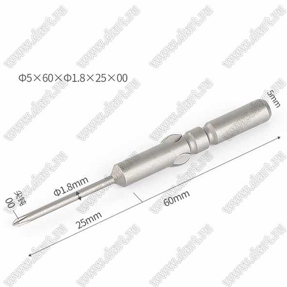 Каталог > Приборы, инструмент, оборудование, материалы > Инструменты > Отвертки, ключи и принадлежности > Биты для шуруповертов и электрических отверток > Ф5x60xФ1.8x25xРН00