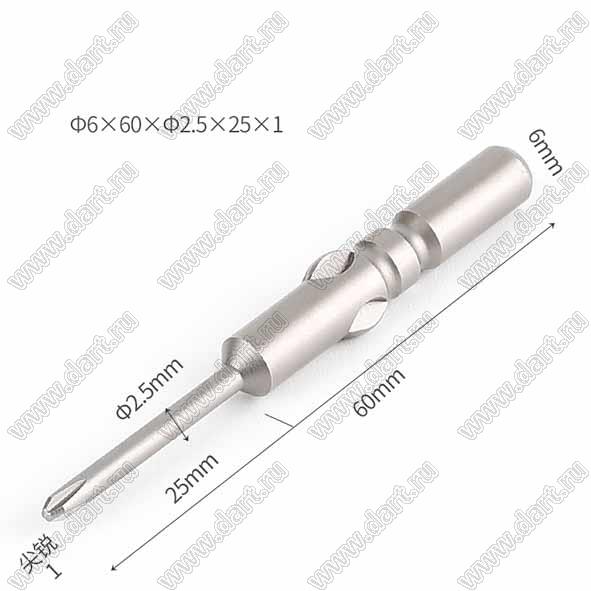 Каталог > Приборы, инструмент, оборудование, материалы > Инструменты > Отвертки, ключи и принадлежности > Биты для шуруповертов и электрических отверток > Ф6x60xФ2.5x25xРН1